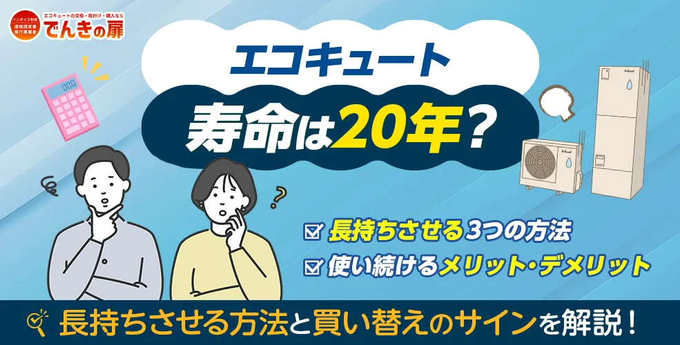 エコキュートの買い替えを検討している方の中には、「エコキュートは本当に20年も使えるの?」「長く使うために何をすればいいの?」と疑問に思っている人もいるかもしれません。 結論からお伝えすると、エコキュートの一般的な寿命は10年〜15年ですが、使い方とお手入れ次第で20年近く使い続けることは可能です。なぜなら、エコキュートは「お湯をためるタンク」と「お湯を沸かす室外機」という2つの部品でできており、 […]